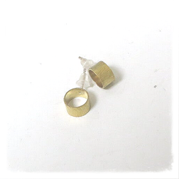 Ze zien er van goud uit, maar het is gezuiverd messing. Een elegant stukje buis rechtopstaand op het oor. 7 mm doorsnee, 4,5 mm breed.