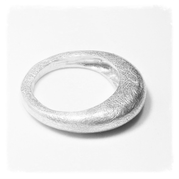 Ovalen ring, versmalde koepelvorm aflopend van 5 mm breed tot 2 mm onderaan de scheen.