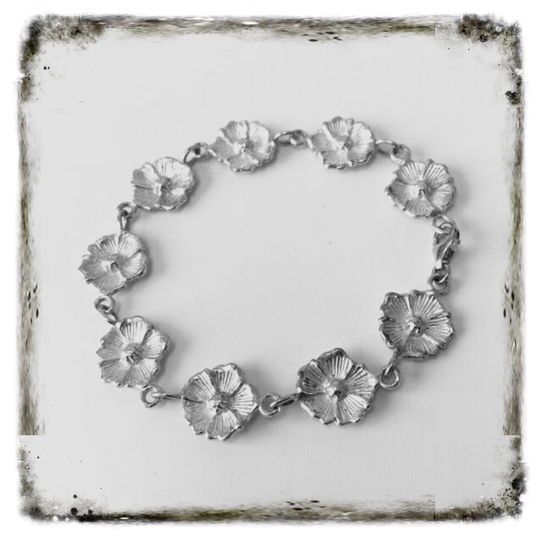 Solide bloemenkralen uit massief zilver, 20 cm lang. Mooie achter-en voorkant van de met de hand geboetseerde bloemen. Er zijn ook oorhangers met deze bloemen beschikbaar.