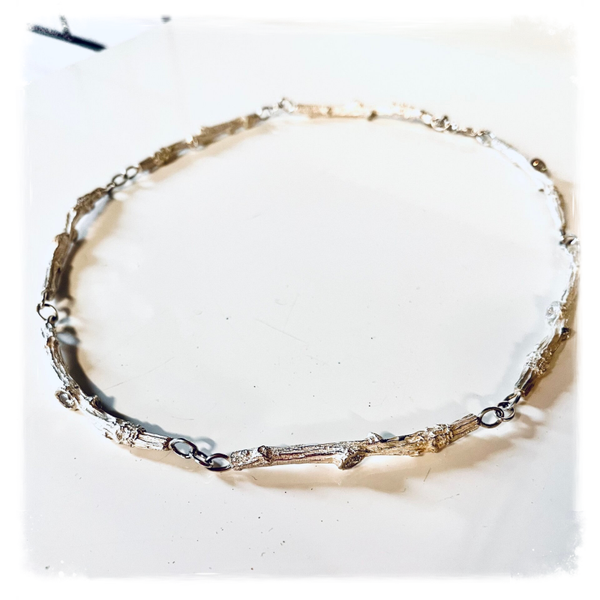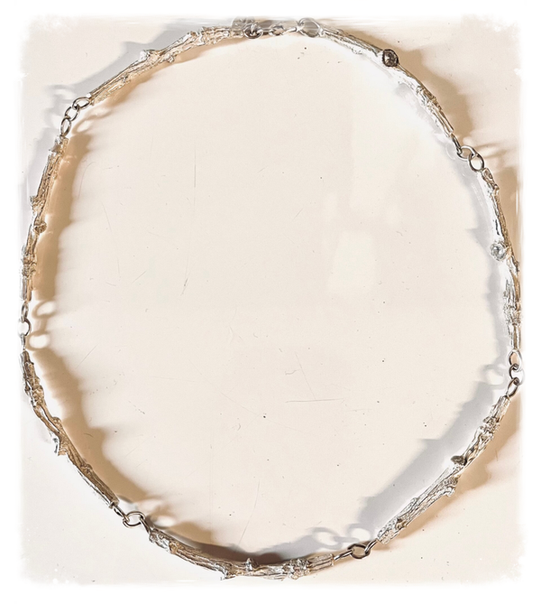 Dit halssnoer is puur hanwerk, ontstaan uit een vondst recht uit de natuur.