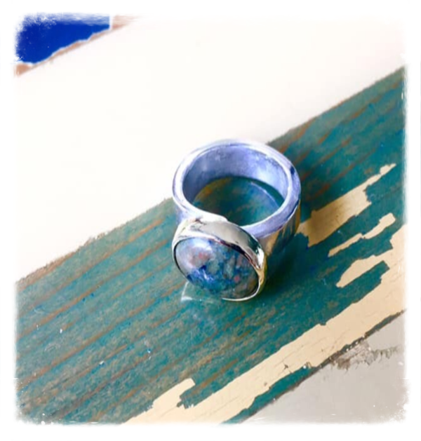 Deze ring werd vervaardigd met bestekzilver en koper. Hij is enkel verkrijgbaar in maat 56.