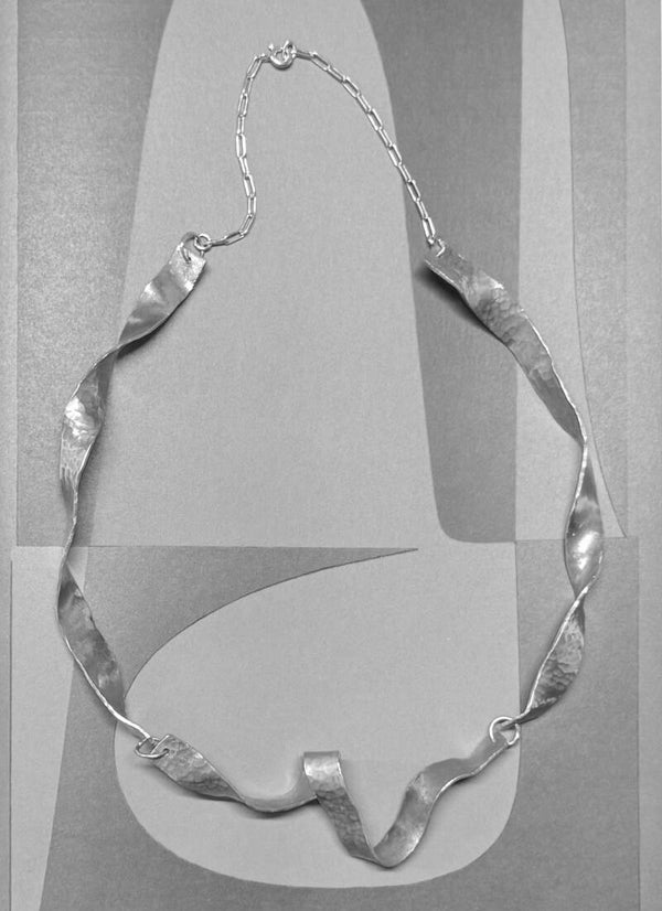 Halssnoer met gedraaid lint-design, uit goudkleurig messing en zilver.