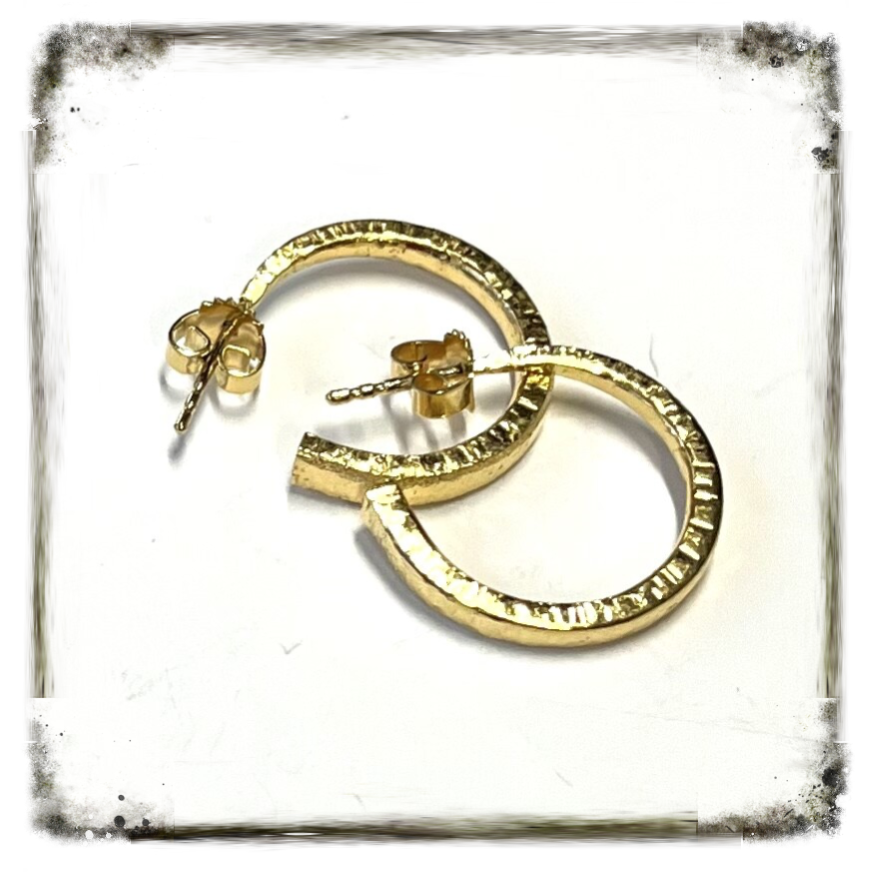 Edel tafelzilver en daarvan de vorktanden omgesmeed tot creolen op stekers. Superdeluxe uitvoering met 5micron 18kt goud verguld. zijn ze niet schitterend?Tafelzilver is supermakkelijk in onderhoud en ietsje harder dan het Ag925 zilver.